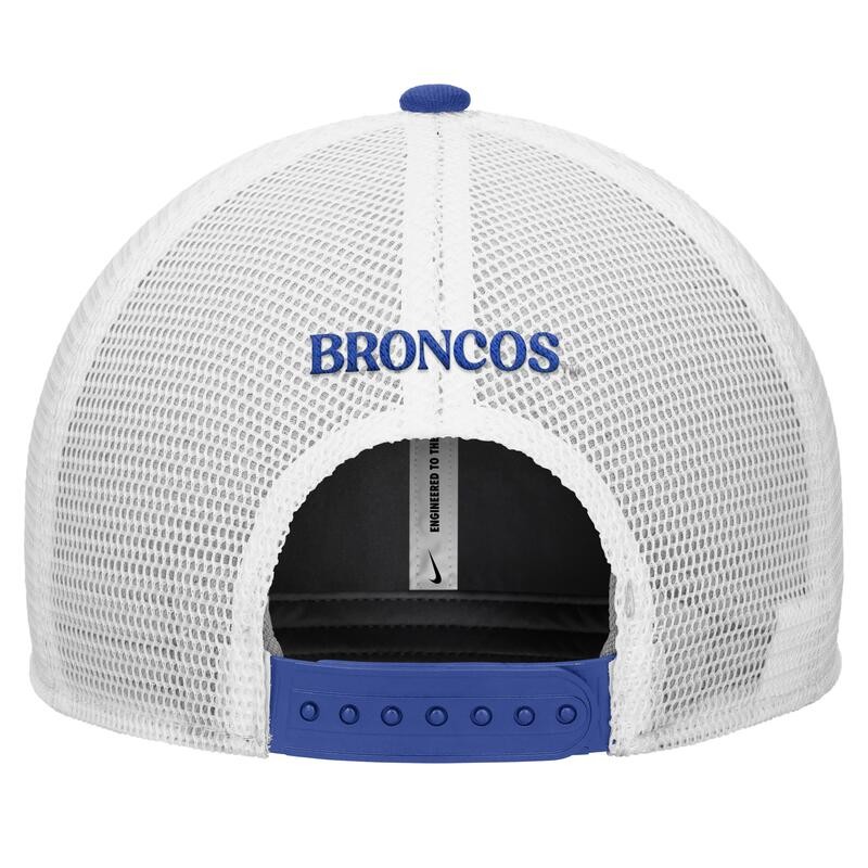 Top off your game day look with this Boise State Nike Rise trucker hat featuring a raised 3D embroidered Boise State athletic logo over the iconic Nike Swoosh. The royal front panels pair with white mesh back panels for breathable comfort, while the snapback closure delivers an adjustable fit.