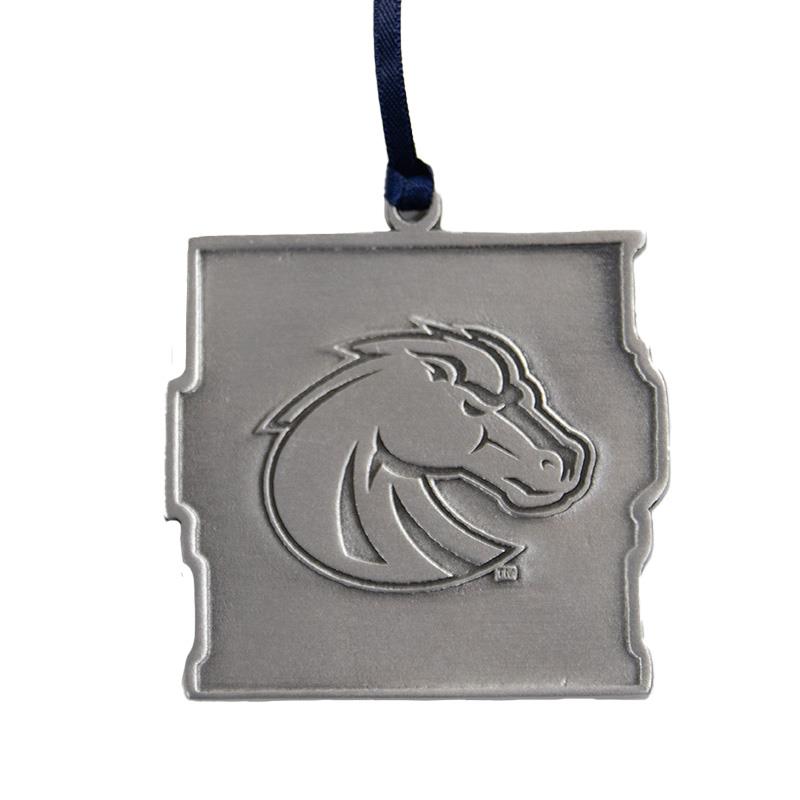Celebrate Bronco moms with a keepsake that sparkles on the tree and shows Boise State pride all season long. This solid pewter ornament features a bold “BOISE STATE MOM” wordmark with blue glitter fill on the front and an embossed Bronco head logo on the back. Finished with a coordinating ribbon for easy hanging.