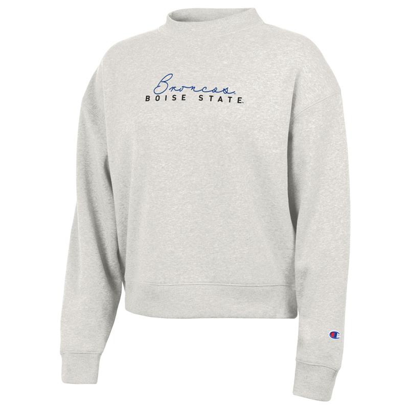 Boise State Women’s Mock Neck Crew, Broncos Over Wordmark by Champion