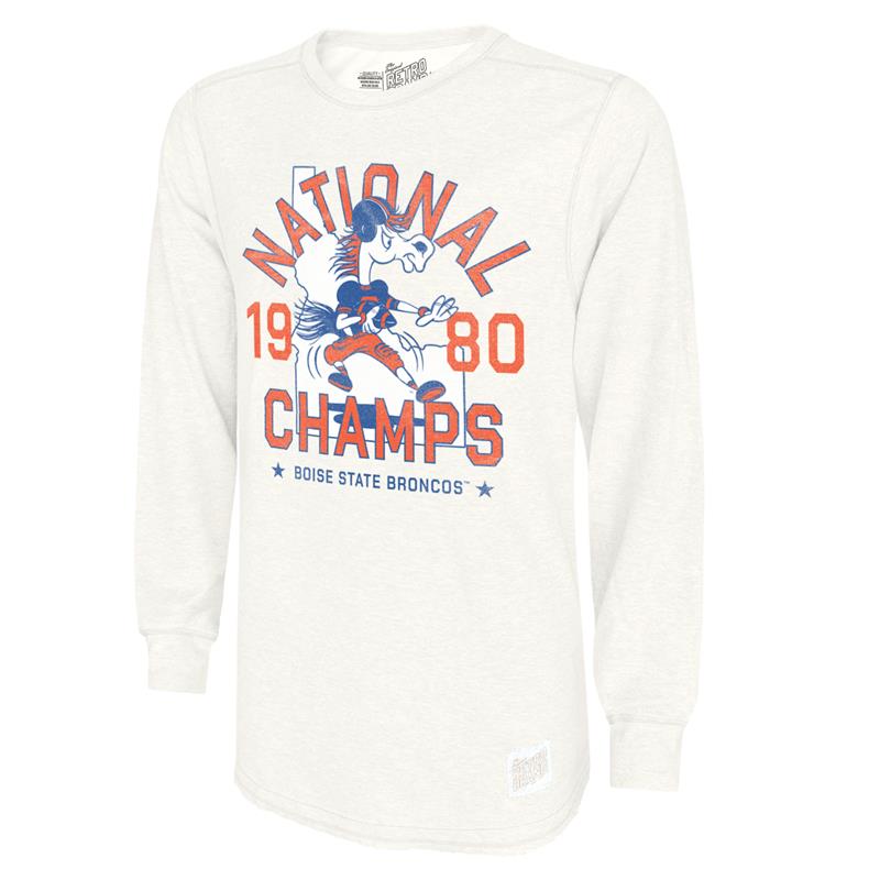 Boise State Vintage White Crewneck Sweatshirt, 1980 National Champs Throwback by Retro Brand