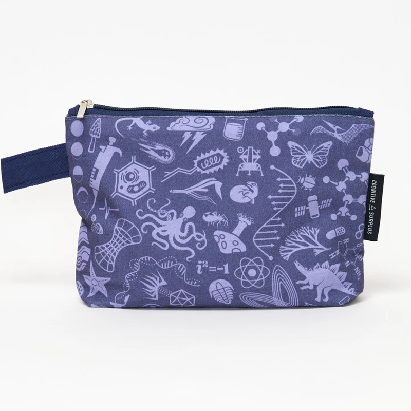 Celebrate science in sustainable style. This roomy Cognitive Surplus pencil bag features the “Science Is Magic That Works” graphic on violet recycled-cotton canvas with a smooth zip closure. Fill it with pens, pencils, makeup, or tech accessories, then toss it in your backpack or tote.