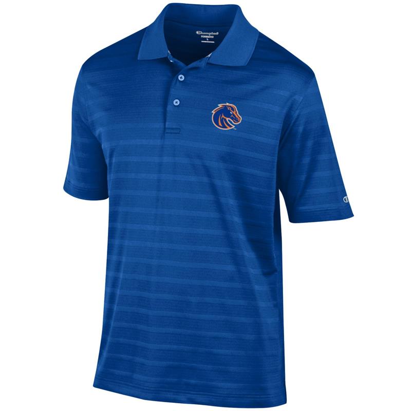 Classic game day polish. This Champion performance polo features a subtle stripe knit, left-chest Bronco head, and everyday comfort for the office or the blue.